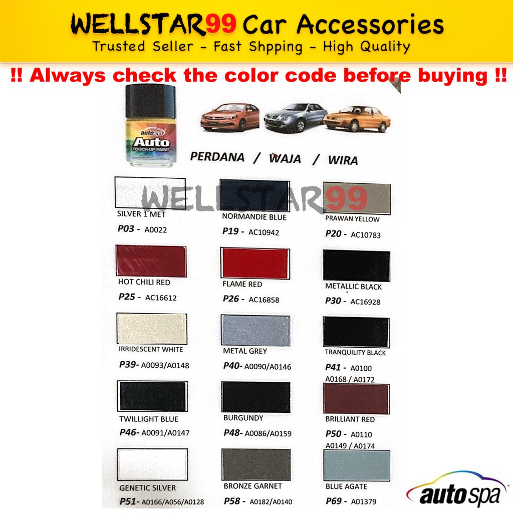 Autospa Touch Up Paint Original For Perodua Bezza Paint Only 18ml Cat Kereta 汽车补æ¼ç½ Shopee Malaysia from cf.shopee.com.my Check spelling or type a new query. Maybe you would like to learn more about one of these? Kod warna cat kereta proton waja. We did not find results for: