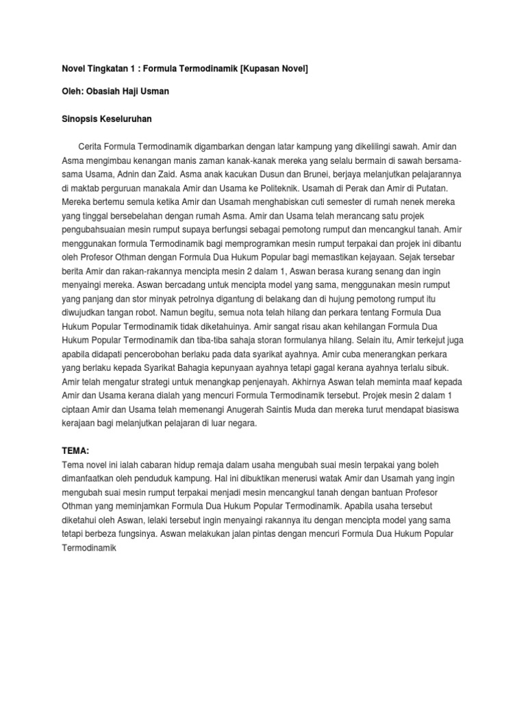 Oleh itu, saya membuat catatan ini untuk menolong mereka. Cerita formula termodinamik digambarkan dengan latar kampung yang dikelilingi sa. Kegigihan dan cabaran yang dihadapi oleh dua orang remaja yang kreatif dan inovatif dalam menghasilkan mesin ciptaannya dengan menggunakan formula dua hukum popular termodinamik. Pembahasan cara membaca novel gratis tanpa koin. Latar masyarakat (novel tingkatan 1).